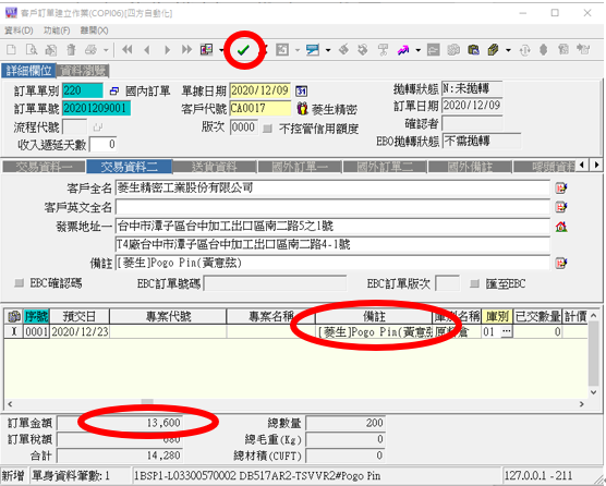 7. 輸入客戶單號(是客戶公司內部給這張PO的編號,不是四方的)
