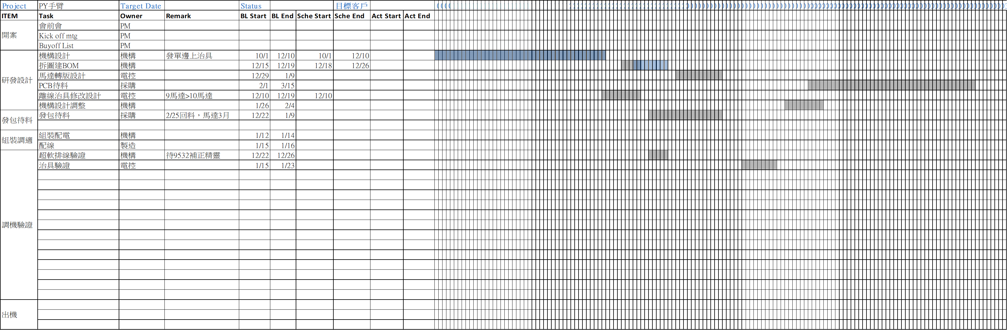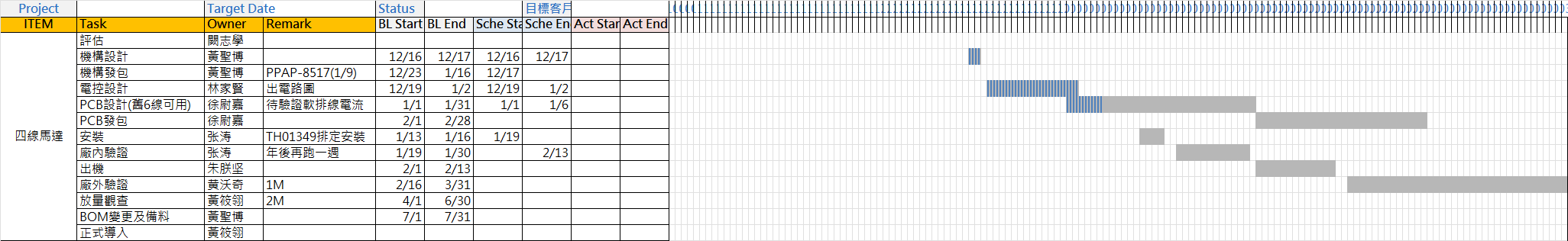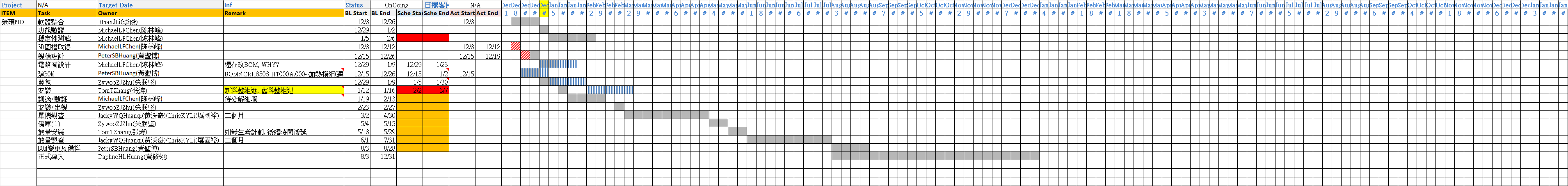燈號專案代號導入物料導入機台目前進度PL