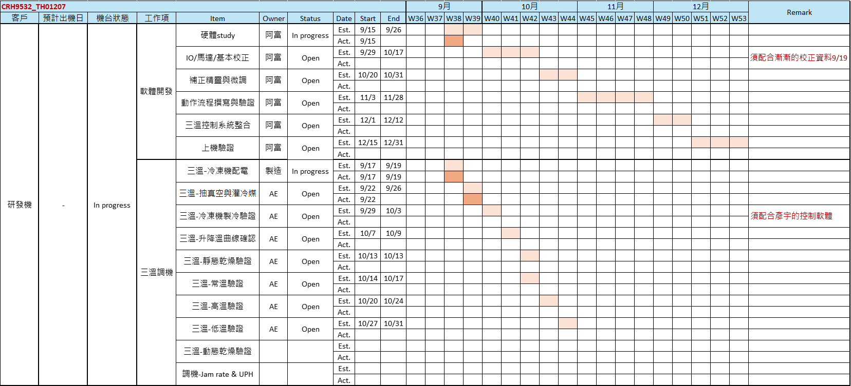 - 軟體開發: Handler軟體轉阿富開發,冷凍機控制為彥宇開發,後續目標期望控溫系統能整合(議題JIRA已建立),需追蹤。